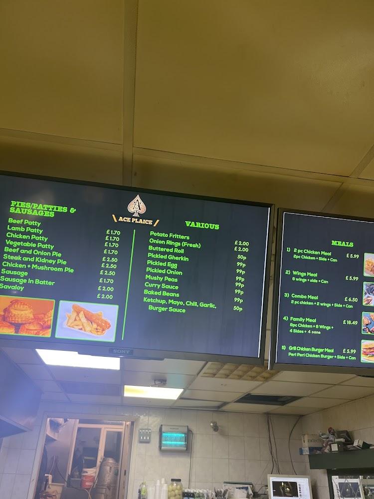 The menu at Ace Plaice is delightfully extensive, featuring a variety of dishes that highlight the best of traditional fish and chip fare while incorporating modern twists. Fish varieties include small and large cod, haddock, and rock salmon, with all options showcasing an incredible crispy batter. Chips come in various styles, from small servings to cheesy chips and curry trays, catering to both small and hearty appetites. For those preferring non-seafood dishes, the selection extends to flavorful burgers, grilled chicken, and a range of savory pies, including beef and kidney or chicken patties. Vegetarian options do not miss the mark either, with choices available to satisfy all dietary needs. Highlights also include their famous doner kebabs, which receive much love from regulars, ensuring there’s something tasty for everyone. With nearly 50 different plates on the menu, visitors can enjoy discovering new favorites every time.